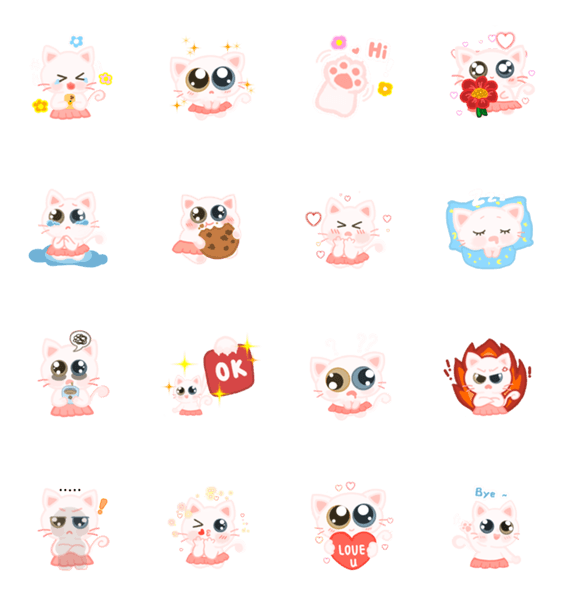 白ネコのあいうえお・・・ってるスタンプ