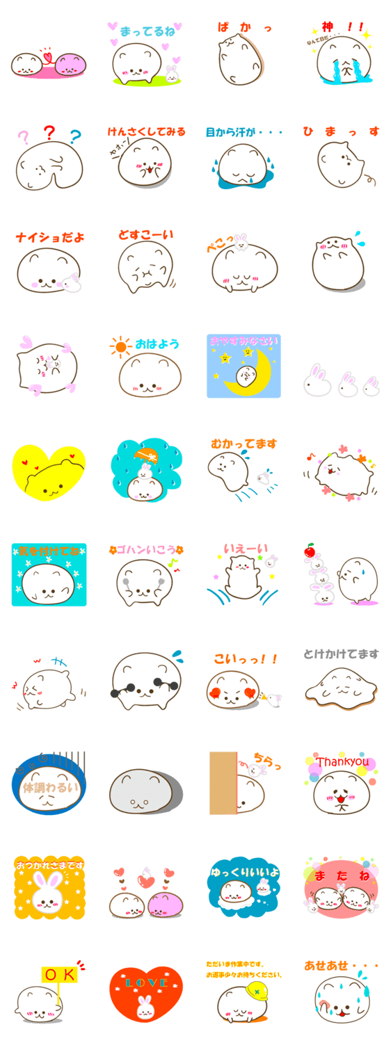 モチモチわんこと白うさぎのホッコリ癒し系スタンプです。