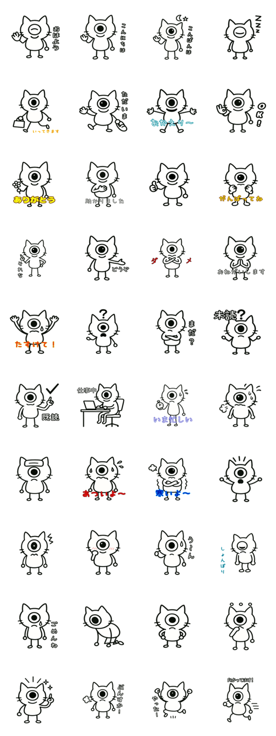 まんまるボディと大きな一つ目がチャームポイント!不思議かわいい“モノにゃん”の、日常で使いやすい40種セット。猫好きさんや個性派好きにもオススメ!