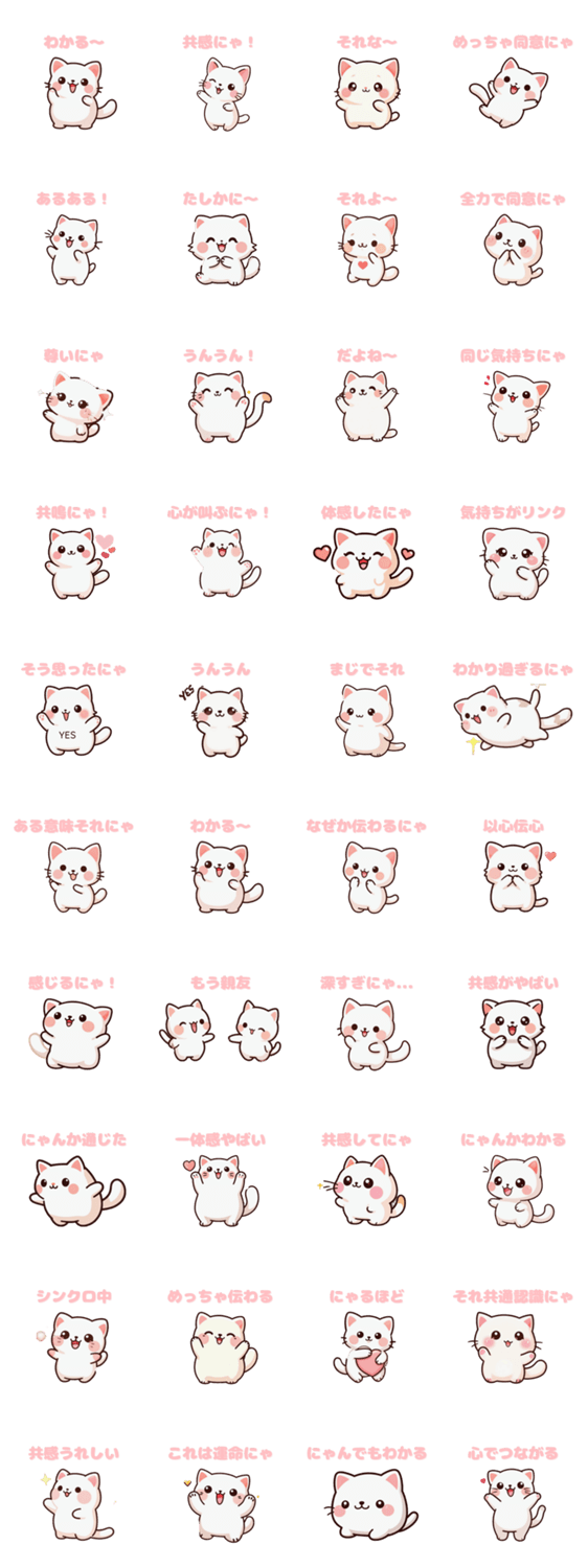 | スタンプ説明 | いっしょに驚いて、共感して、うなずいてくれる「ぷににゃ」セットです♪毎日使いやすい感情スタンプ! |