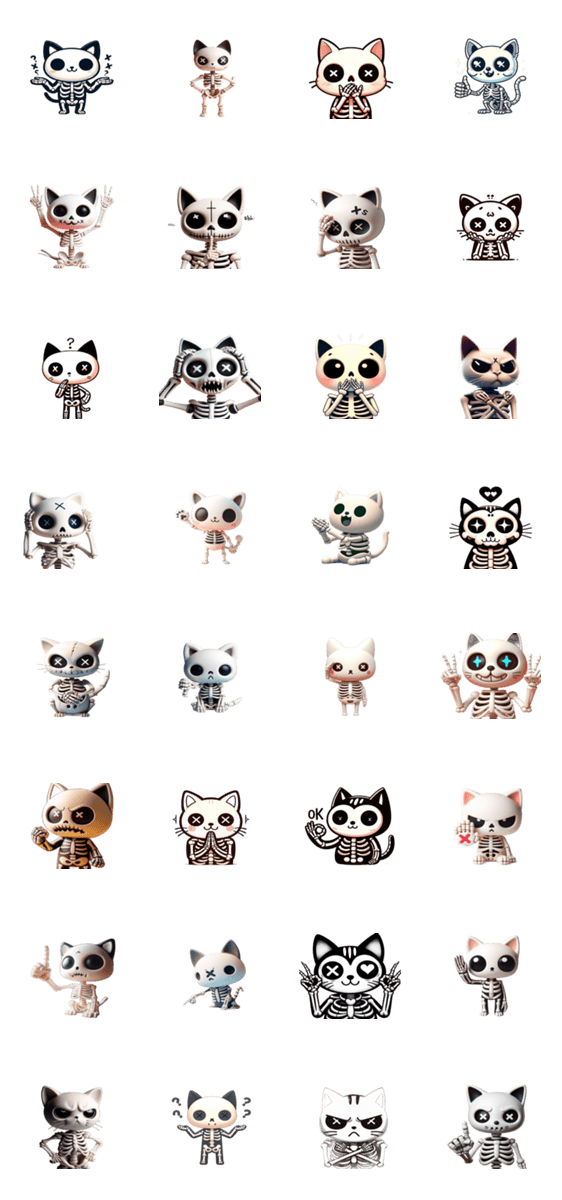 | スタンプ説明 | 骨ねこ感情に耐えきれず崩壊。面白い、LINE向け、日常感 |