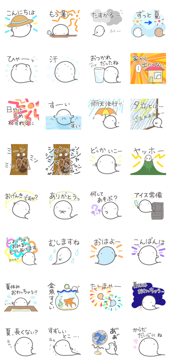 最近の夏は暑くて、「夏、長くない?」「家から出たくない」と言いたくなります。そんな日本の夏につぶやきたいスタンプです。ずっと夏、もう暑い、おつかれだったね、汗…