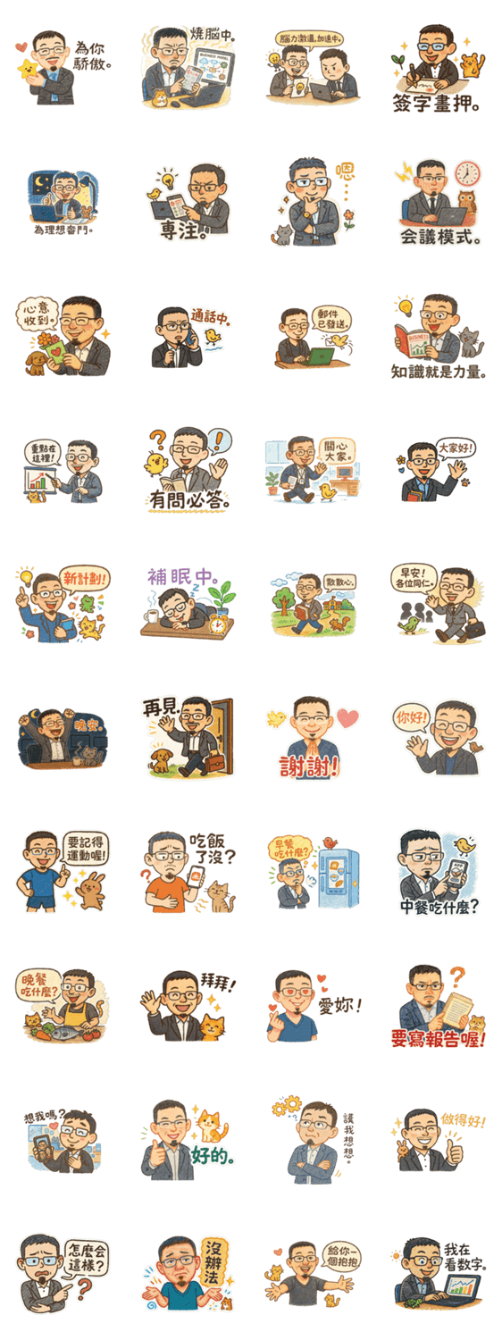| スタンプ説明 | The serious boss Xiao Pan's work details |