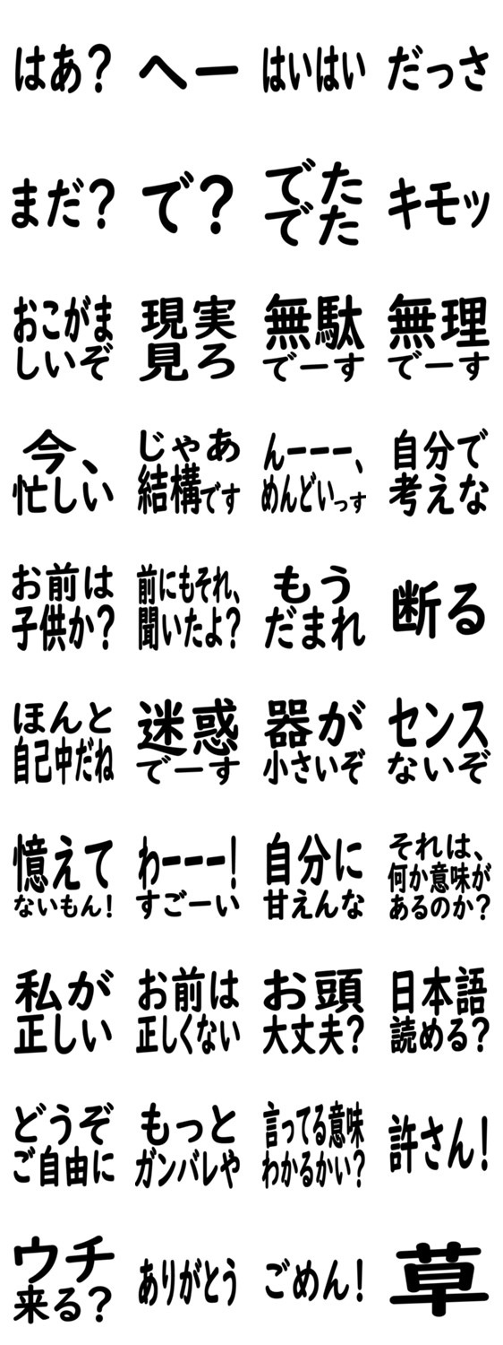 君はどうしようもない人間だ。 このスタンプで君の思いを全てぶつけてください。 ※職場・日常生活用