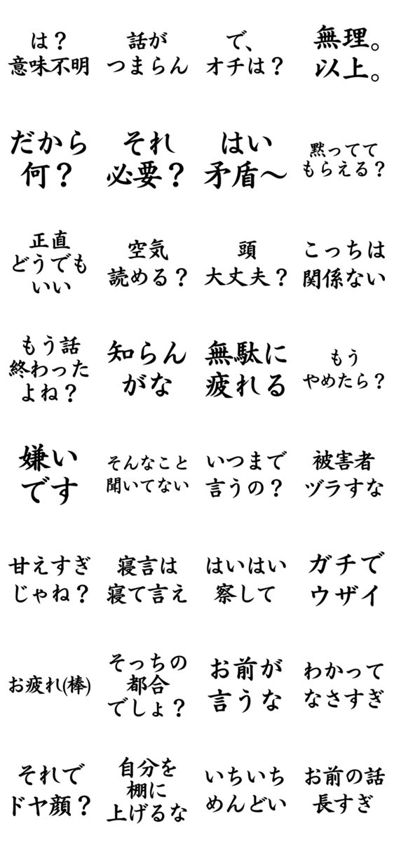 | スタンプ説明 | 言葉を選ばず直球で伝えるあなたに。空気読まずに感情をぶつけたい時にどうぞ。#オブラートに包めない #ストレート発言 #毒舌 #LINEスタンプ |
