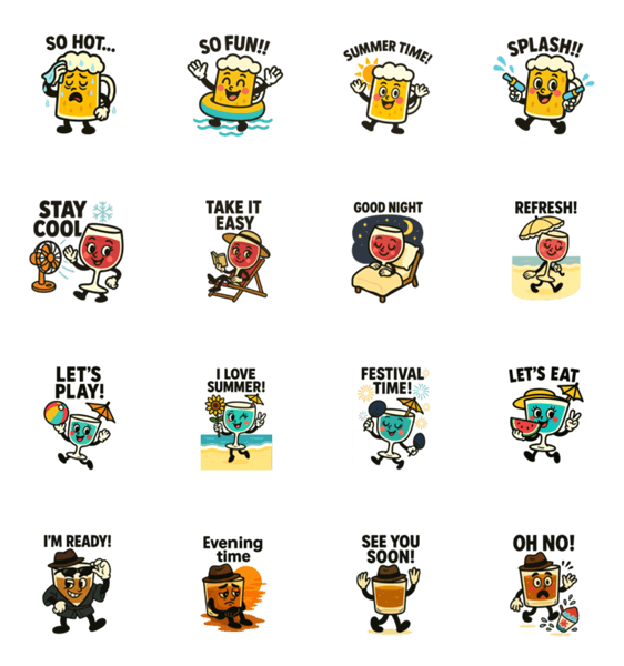 夏を楽しむ4人が大集合! ほろよいカルテットの元気な夏スタンプ!