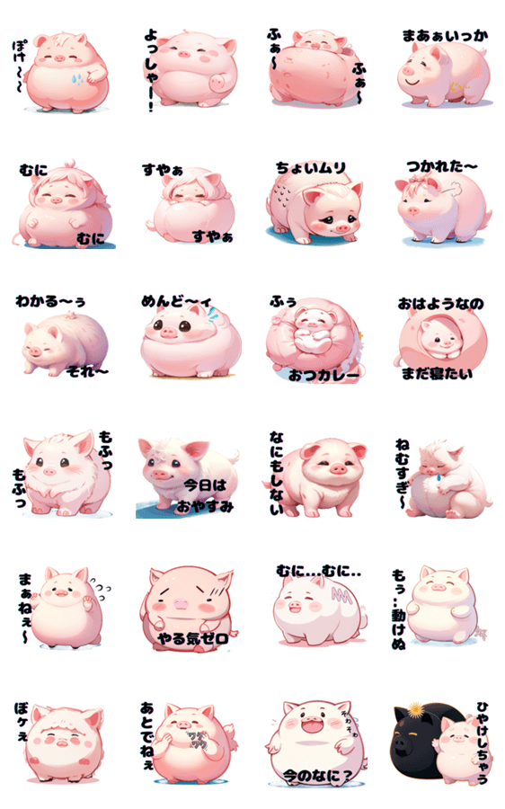 ゆる〜い表情でほんわか癒し系のブタちゃん♪日常のあらゆるシーンで使える脱力系スタンプです。ゆるゆる生活のお供にどうぞ♡