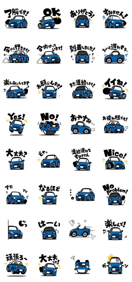 キュートなスタイルの軽オープンカーのスタンプです!友達同士で、チームのグループLINEで、愛車をアピールしちゃおう!