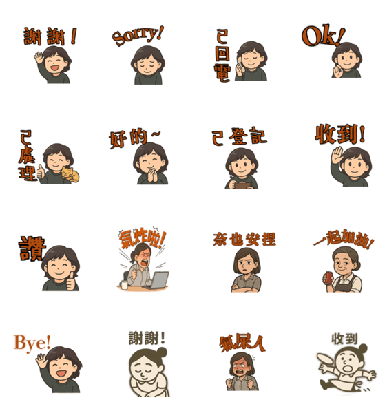 | スタンプ説明 | It was a daily life of an Anntie with her cat. From tired thumbs to half asleep replies, she was every tired workers inner voice, in cute form. |