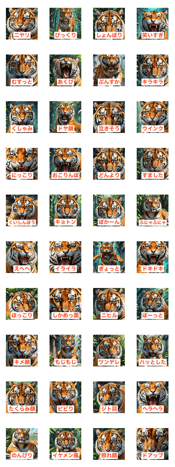 虎が40種類の表情で、あなたの気持ちを代弁します!使って楽しい、見てかわいいスタンプです。