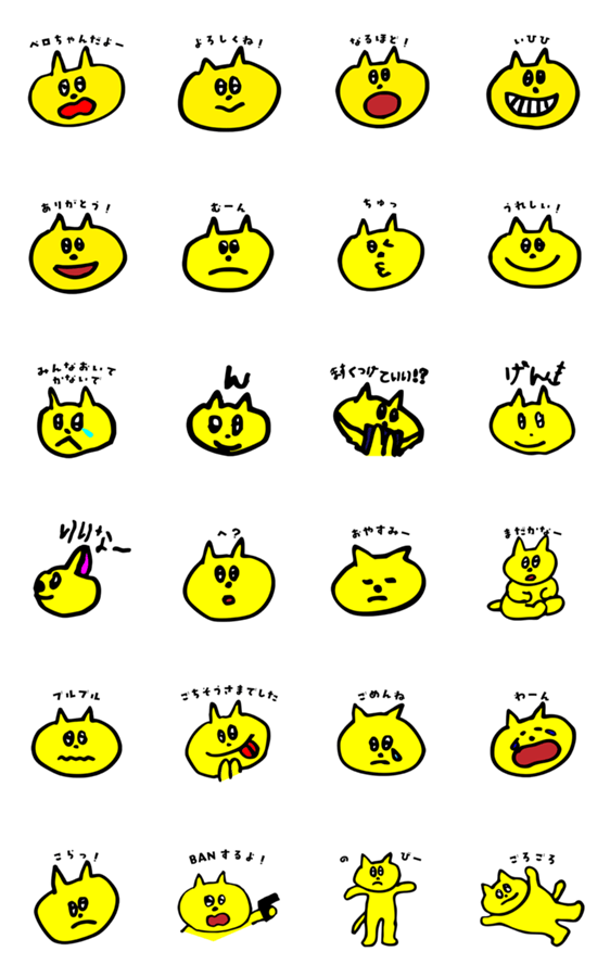 | スタンプ説明 | 黄色い元気な犬のペロちゃんです。好きな食べ物は骨です。 |