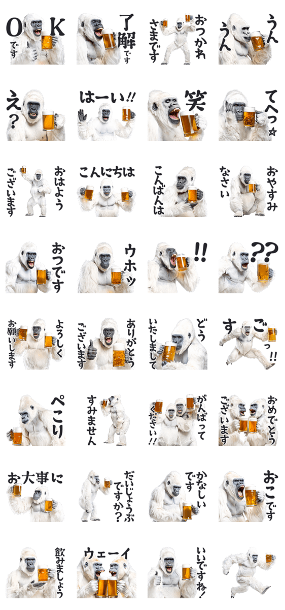 ごりごりゴリラ★酒ビール!やさしい敬語白 -LINEスタンプマニア