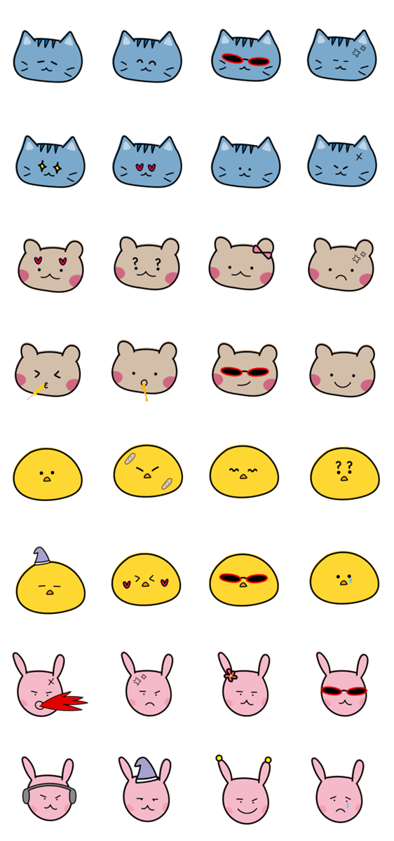 | スタンプ説明 | Four quirky animal friends with a touch of sentiment. Add a unique vibe to your chats with their expressive, cool style! |