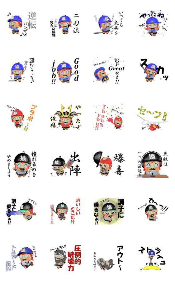 猿と野球と名シーン!さる谷サル平が演じる野球の名シーンスタンプ集です。