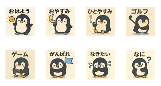 | スタンプ説明 | Cute, quirky penguins for every mood! Perfect for brightening chats with playful expressions and frosty charm. Let the waddling begin! |