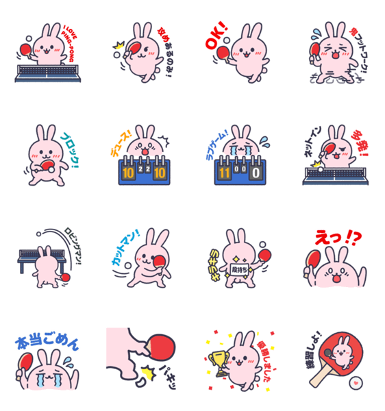 卓球の上達を目指して、日々奮闘する卓球うさぎの日常をスタンプにしました。卓球仲間に送る、おすすめスタンプになっています。