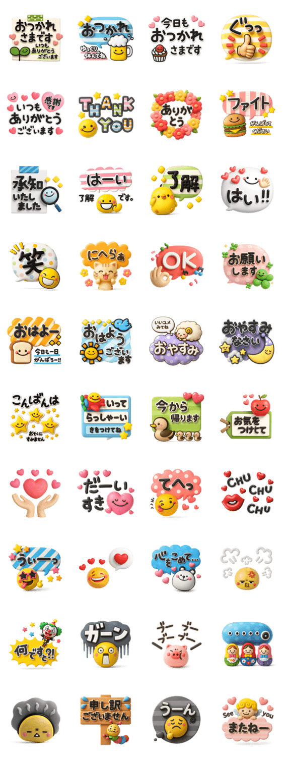 | スタンプ説明 | お仕事やママ友など誰にでもとっさに使える便利な丁寧語でか文字スタンプです。内容も厳選しており春夏秋冬年中使える初心者にもおすすめスタンプです。 |