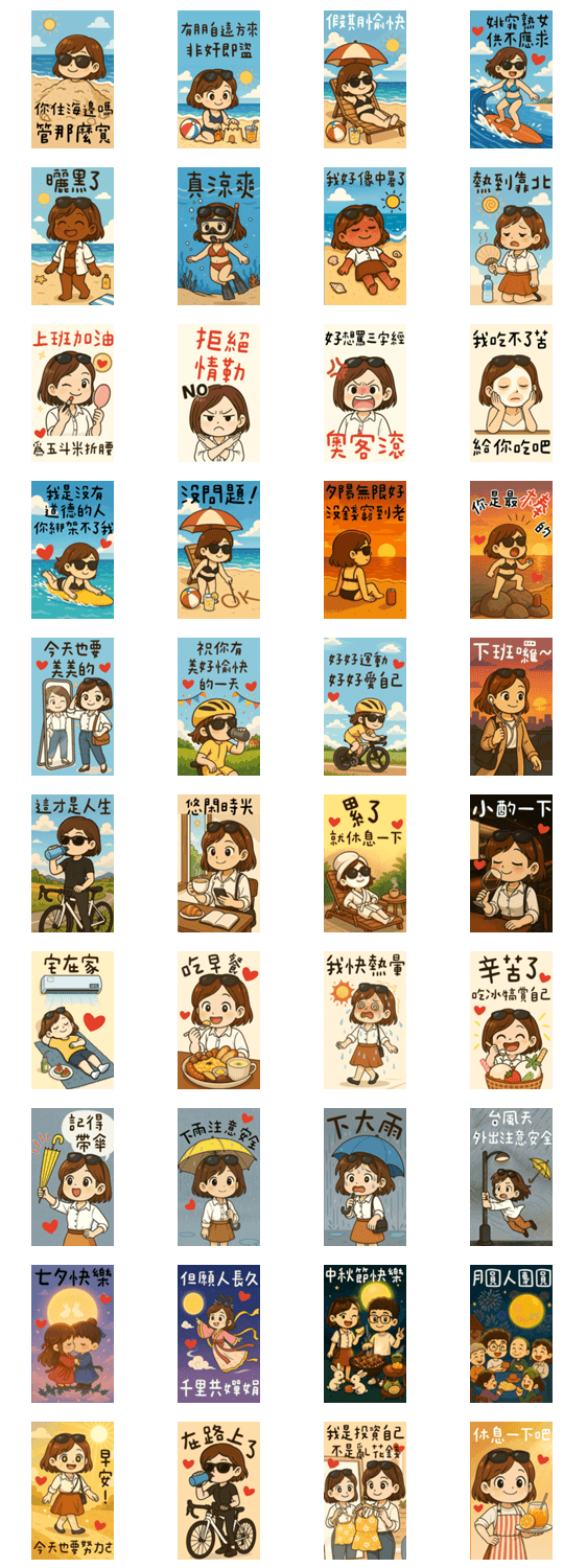 | スタンプ説明 | This summer is very hot ~ Happy Mid-Autumn Festival These stickers will show up extra large in chats. |