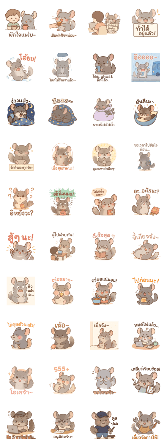 | スタンプ説明 | Aung Aung is a male chinchilla full of positive energy and sincerity. He is here to express every feeling in daily life. |