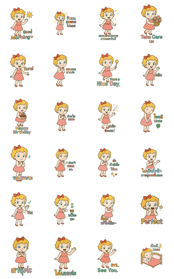 | スタンプ説明 | Goldie, the bright-eyed girl with a full heart, is here to share joy, cuteness, and care. Always by your side, every single day. These stickers will show up extra large in chats. |