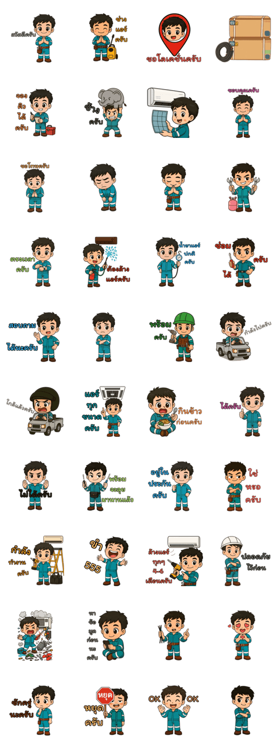 | スタンプ説明 | Cute stickers for air conditioner technicians |