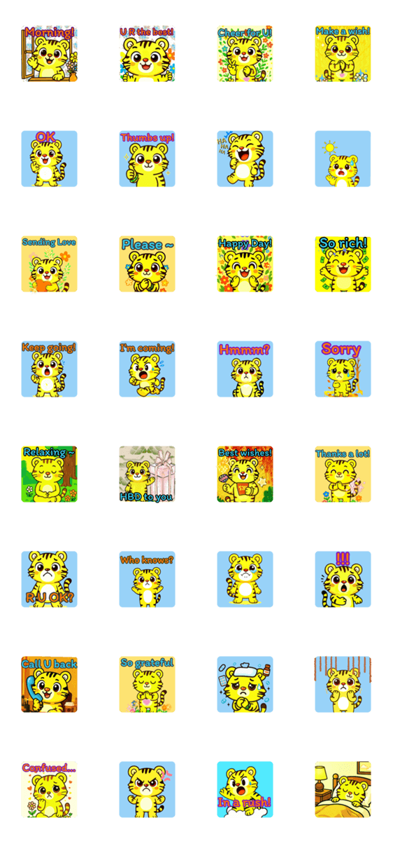 | スタンプ説明 | Yellow tiger sticker cheerful and cute |