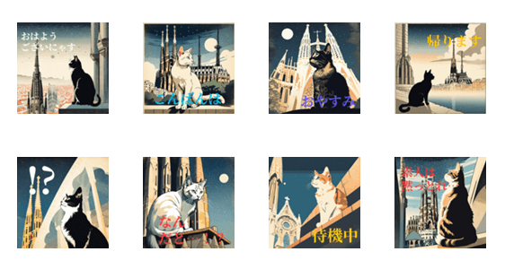 浮世絵の中で生きる猫の姿をスタンプにしました。