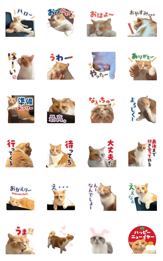 白ネコのあいうえお・・・ってるスタンプ
