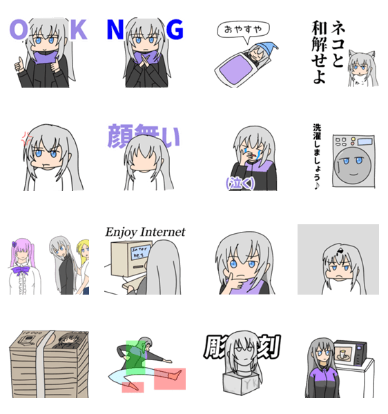 - 白ネコのあいうえお・・・ってるスタンプ