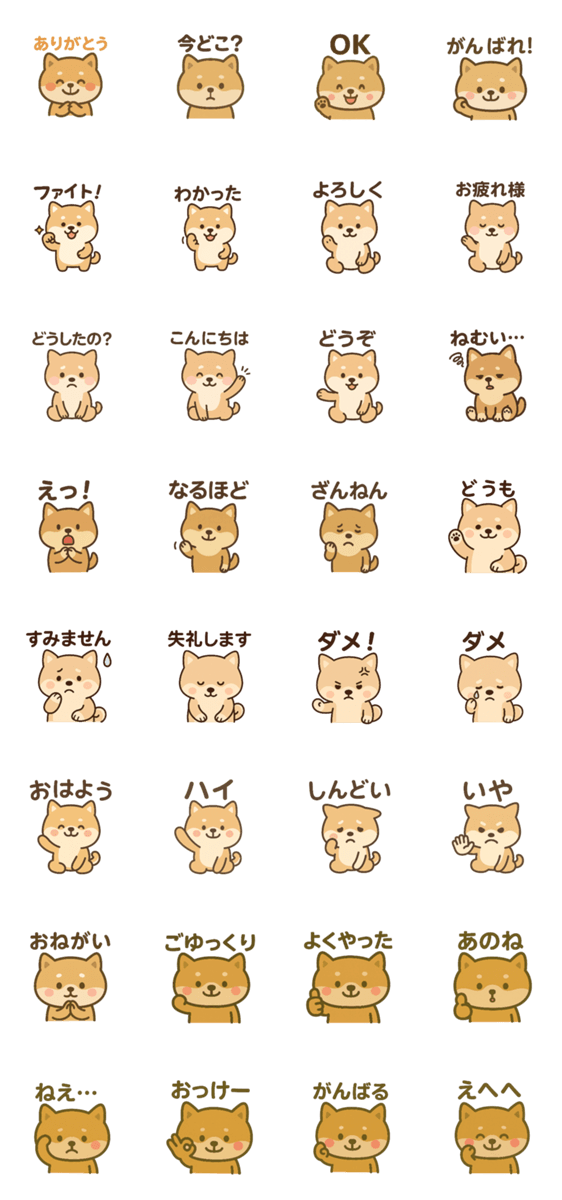 癒しの柴犬があなたの気持ちをほんわか伝えてくれる!「ありがとう」やなど、日常的に使いやすい内容になっています。家族や友達、仕事仲間にも使いやすいスタンプです!