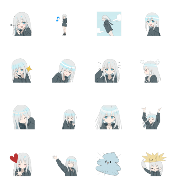 動くパーカーの女の子(銀髪) -LINEスタンプマニア