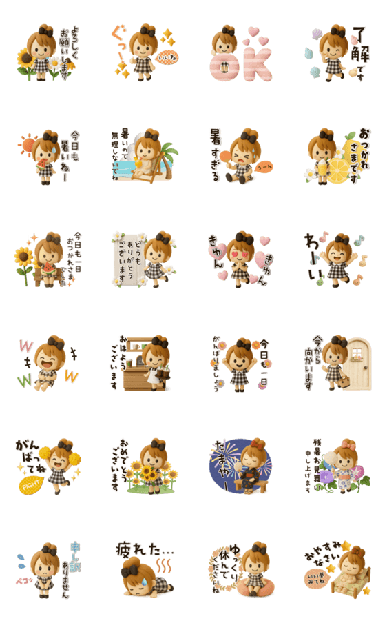可愛い3Dおだんごガールの動くスタンプセットです。 毎日使える日常スタンプセットです。