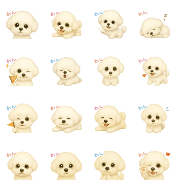 ビションフリーゼ好き必見!ふわふわのビションが「わん」で気持ちを伝える新感覚スタンプ♪日常会話・挨拶・リアクションに便利!犬/かわいい/JP