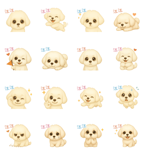 台湾向けマルチーズスタンプ!かわいいマルチーズが「わん」で気持ちを伝える♪日常会話・挨拶に便利!マルチーズ/犬/かわいい/TW