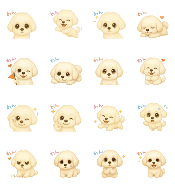 マルチーズ好き必見!かわいいマルチーズが「わん」で気持ちを伝える新感覚スタンプ♪日常会話・挨拶・リアクションに便利!マルチーズ/犬/かわいい/JP