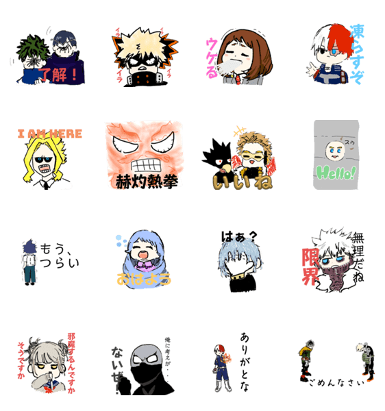 メインキャラをかきました。 ※LINE Creators Collaboration 僕のヒーローアカデミア参加スタンプです。