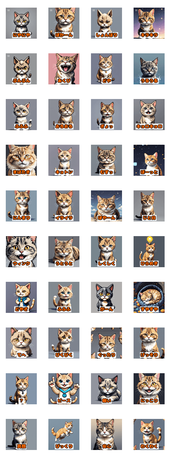 | スタンプ説明 | Ever feel like a moody cat? Now you can show it with these expressive kitty stickers! |
