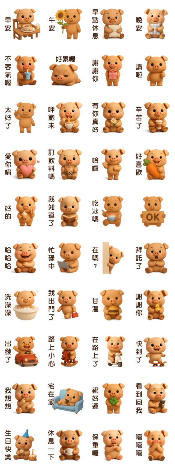 | スタンプ説明 | Cute Milk Tea Pig **Practical Daily Greetings** |