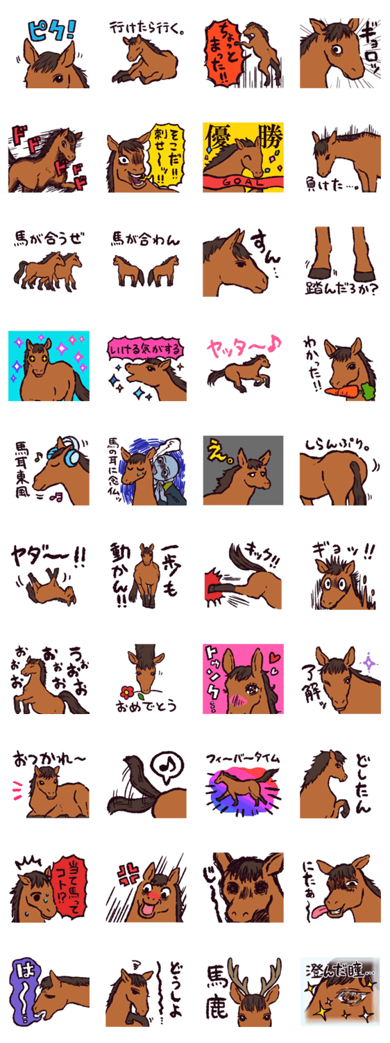 刺せ~ッ 動物/かわいい/連絡/挨拶/日常会話/返事/返信/使いやすい/便利/シンプル/面白い/笑える/シュール/煽り/皮肉/毒舌/うざい/おすすめ/友達/ウマ/競馬/鹿毛