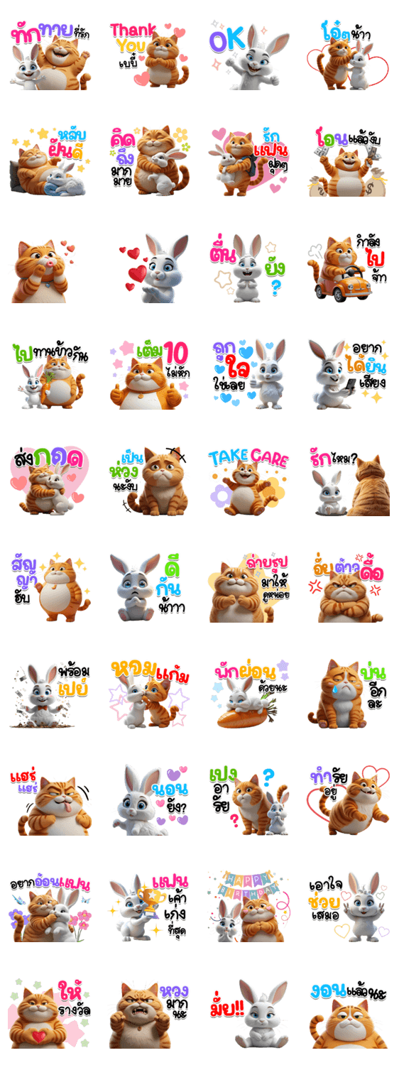 | スタンプ説明 | Spicy Rabbit & Chubby Cat Come join hands and show your quirkiness! A pair of best friends that will make your chat fun every day. |