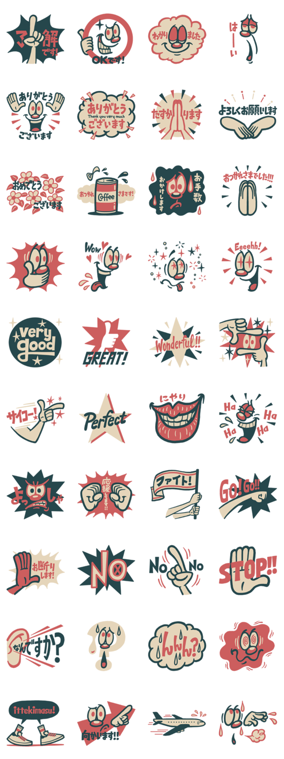 日常会話で使いやすいシンプルで便利なレトロポップな“でか文字”スタンプ★絵文字『シンプル・レトロ・絵文字』シリーズも