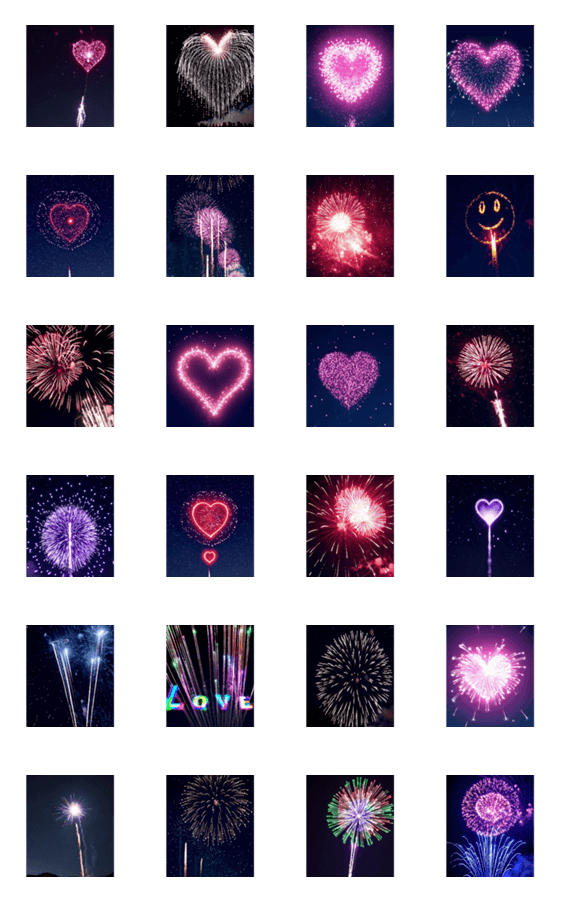 夜空に打ち上がるキラキラな花火をたくさん贈ってください♪ハート花火が多めです❤️文字なしで使い方自由です♪癒し/ハート/毎日/LOVE