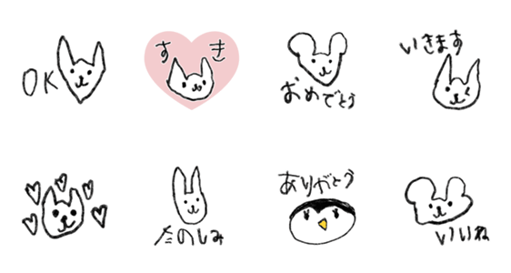 | スタンプ説明 | 5歳が描いたゆるい動物の絵と文字がかわいい、便利な挨拶スタンプです。 |