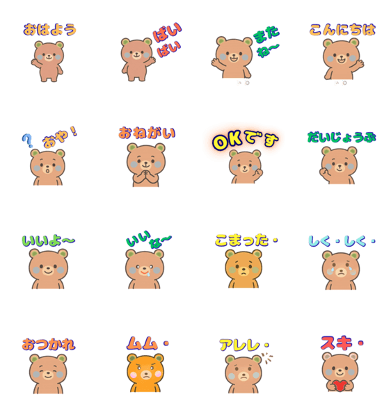| スタンプ説明 | 【毎日使える】チビクマ・ステッカ 2 シンプルなデザインで、家族や友達同士で使いやすいあいさつが沢山!。 かわいい・・が好きな方におすすめです。 |