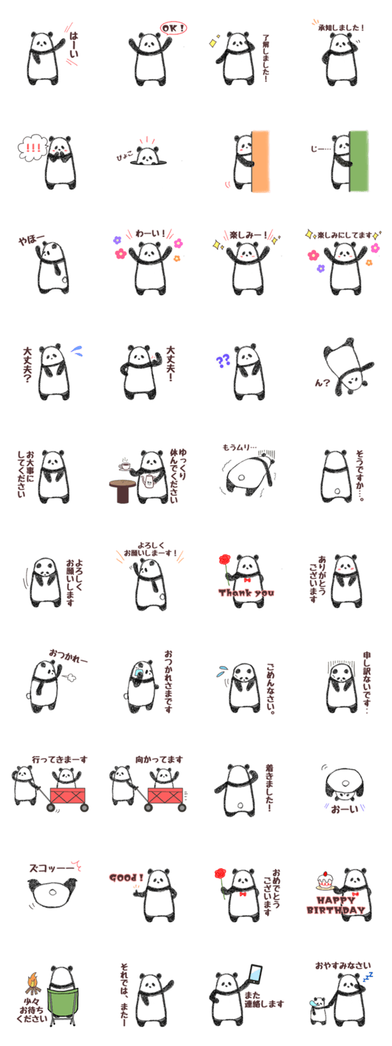 毎日ずっと使える、シンプルで便利なパンダのスタンプです。