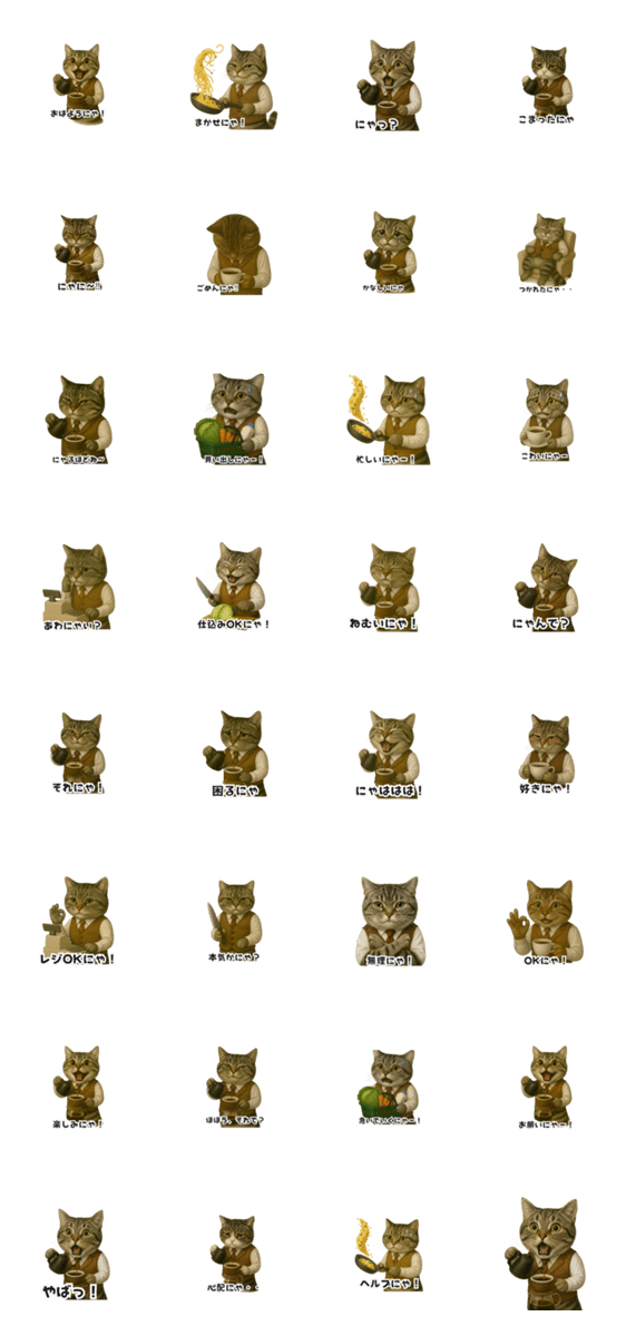 リアルな猫がカフェスタッフに!これぞ猫カフェ! 毎日のトークに使いやすいスタンプにゃ♪
