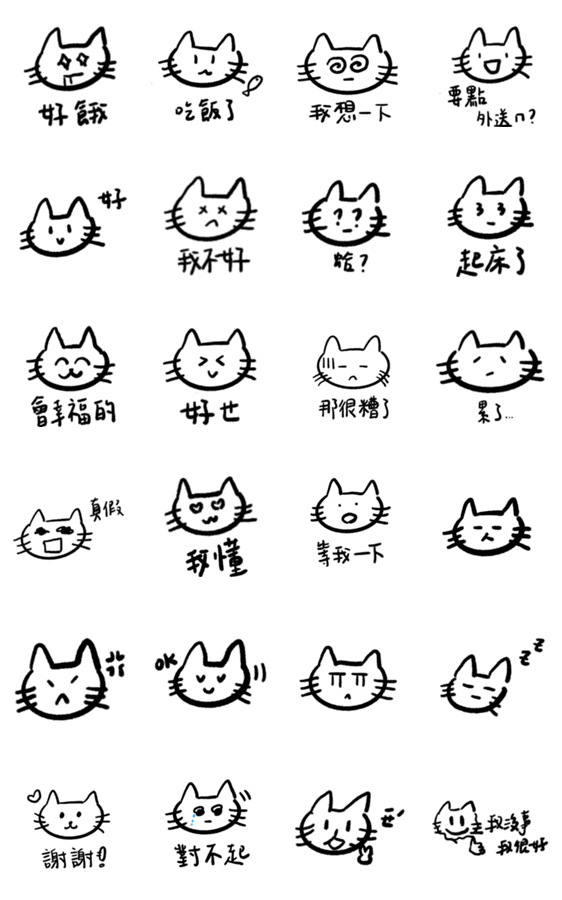 白ネコのあいうえお・・・ってるスタンプ