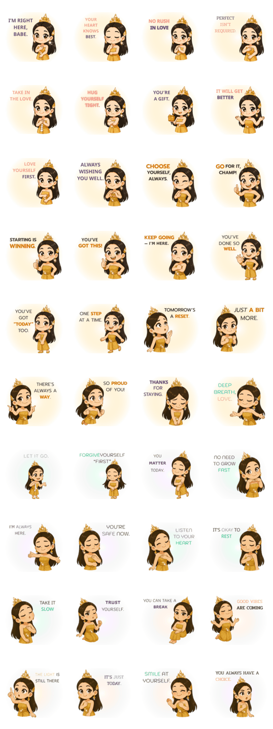 優しい言葉で、心にそっと寄り添います。 癒し、励まし、そして希望を込めたスタンプをあなたに。