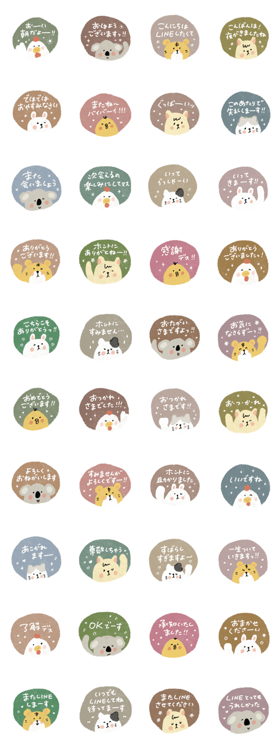 可愛い後輩感/毎日使える/使いやすい/ニワトリ/カピバラ/コアラ/トラ/大人可愛い/落ち着いた/アニマル/優しい雰囲気/おすすめ/オススメ/文末/言葉/おやすみ/よく使うセット