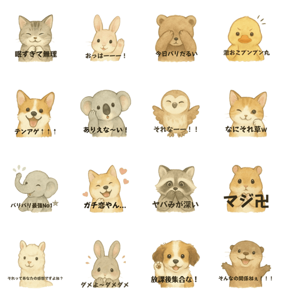 平成アニマルズ(水彩 -LINEスタンプマニア